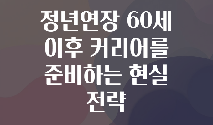 🤔 60세 이후 정년연장, 당신은 어떻게 커리어를 준비하고 계신가요? 🌟우리나라에서 정년이 점점 늘어나면서 ‘60세 이후의 커리어’는 더 이상 선택이 아닌 현실이 되었습니다. 📈 통계청에 따르면 60세 이상의 고용률은 꾸준히 상승 중이며, 많은 사람들이 은퇴 후에도 더 오래 일할 수밖에 없는 상황에 처해 있죠. 남은 인생을 경제적으로 안정시키면서도 의미 있게 살기 위한 ‘정년 연장 후 커리어 준비’는 어떻게 해야 할까요? 🧑💼👩💻본 글에서는 60세 이후 정년연장 시대에 맞는 현실적 전략을 자세히 안내해 드립니다. ✅ 준비 단계부터 실행까지, 유용한 정보와 꿀팁💡, 그리고 현실적인 조언을 한가득 담았으니 끝까지 함께해 주세요!🌈 1. ‘정년연장’과 ‘60세+커리어’ 현실 🔍⭐ 한국 정..
