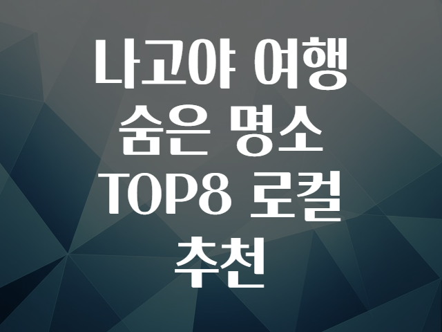 나고야 여행 숨은 명소 TOP8 로컬 추천여러분, 나고야 여행 가고 싶은데 사람들이 많이 찾는 유명한 곳 말고 로컬들이 사랑하는 숨은 명소를 알고 싶지 않으신가요? 🤔 대도시답지 않은 여유와 독특한 매력을 가진 나고야의 잘 알려지지 않은 보석 같은 장소들을 소개해 드릴게요! 💎✨일본 중부 지방의 중심지인 나고야는 고층 빌딩과 대형 쇼핑몰뿐만 아니라 전통과 현대가 공존하는 매력 만점 도시입니다. 이번 글에서는 나고야 로컬도 애정하는 생생한 숨은 명소 TOP8을 꼼꼼히 알려드리겠습니다. 🗾🧳🌟 나고야 여행 전 알아두면 좋은 꿀팁 🌟✅ 방문 최적시기봄(35월)과 가을(911월)이 가장 쾌적해요. 기온도 적당하고 벚꽃, 단풍 명소를 동시에 즐길 수 있답니다.여름엔 습도가 높아 덥고, 겨울은 쌀쌀해 방..